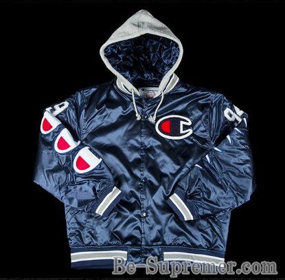 シュプリーム チャンピオンフードサテンヴァーシティジャケット