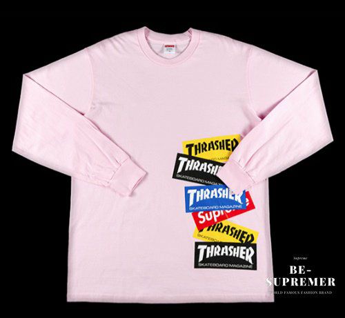 Supreme シュプリーム 21FW Thrasher Multi Logo L/S Tee スラッシャーマルチロゴロングスリーブTシャツ ロンT ライトピンク